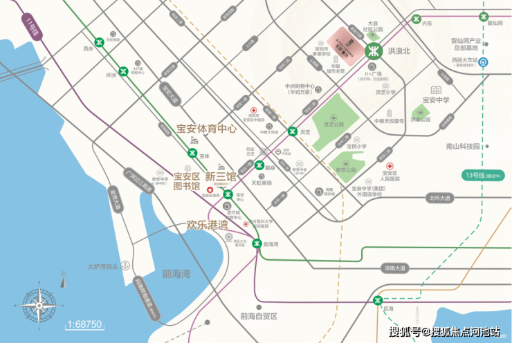 项目紧邻地铁5号线洪浪北站、主干道—宝安黄金发展中轴创业二路,近107国道,与深圳宝安国际机场直线距离约11公里,链接万象都会生活。
