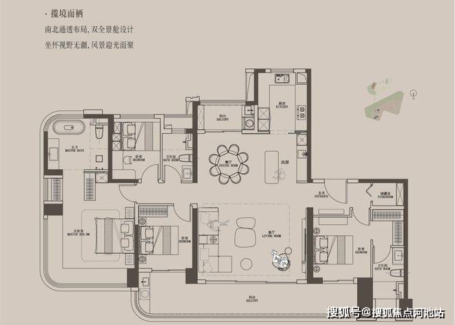 南北双阳台,餐厅出小阳台,西北向看大运公园山景;客厅出超大观景大阳台,东南向看大运中心。