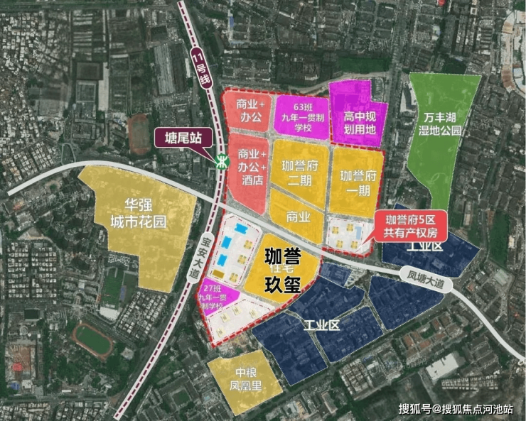 鸿荣源珈誉玖玺项目地址位于深圳市宝安大道与凤塘大道交汇处东南侧,该项目原是"塘尾片区城市更新单元“,由鸿荣源集团一手打造,也号称是第二个壹城中心升级版,地处沙井核心板块,周边1公里内涵盖3个重量级商业(万丰海岸城购物中心+鸿荣源壹方奥特莱斯+华强购物中心),11号地铁线”塘尾站“距离约300米。