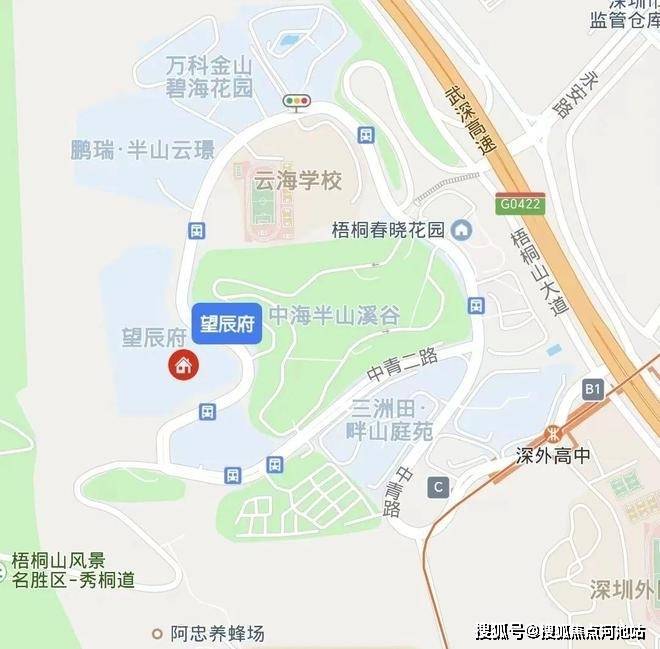 山海天成(望辰府),位于深圳市盐田区盐田港中青路中海半山溪谷西侧,梧桐山半山腰上,项目所在的板块属于盐田港全新开发的区域,该片区的楼盘基本上都是在2015年之后开发的,整体面貌较新,都是高档小区,附近有2/8号地铁线“深外高中地铁站”。