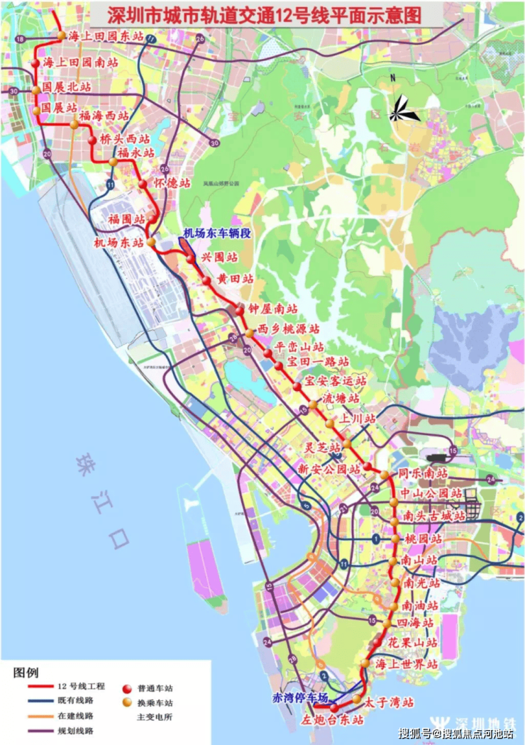 地铁12号线由南向北依次串联蛇口自贸区、南山中心区、前海自贸区、宝安中心区、机场和会展片区,是支撑深圳西部发展轴的轨道交通骨干线。