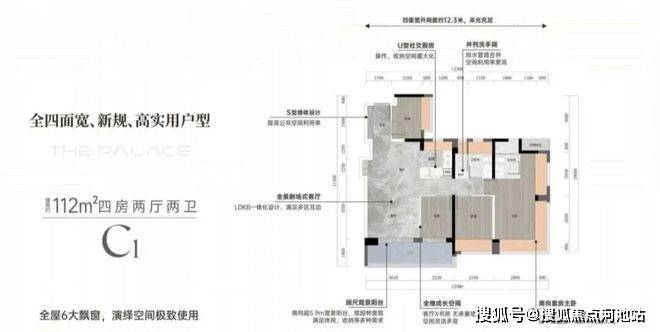 112㎡四房两卫两个户型,总价区间在430-470万元。