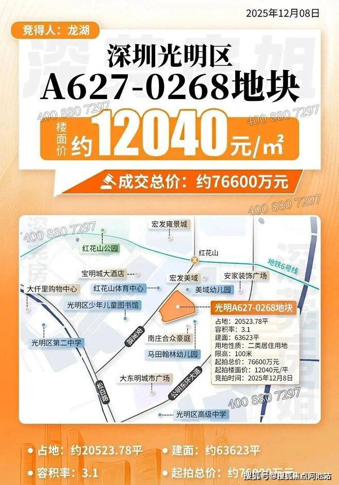 龙湖观萃苑原是在2025年12月8日深圳集中土拍的A627-0268宗地,由龙湖集团以低价7.66亿元成交,楼面价格12039元/㎡,综合建设成本应该在1.92万/㎡左右,旁边的宏发美域二手房在2026年1月份最新成交单价3.19万/㎡,而附近400多米的宏发悦见公园里新房清盘均价3.7万/㎡,综合分析这次龙湖观萃苑开盘均价应该会在3.5万/㎡左右,起步价285万起(仅供参考,以开盘最终现场公式为准)。