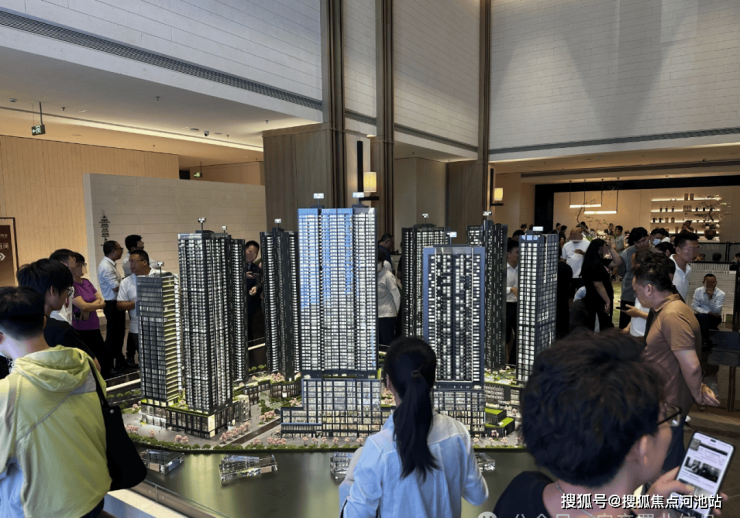 翰熙典居,近期展示中心人潮汹涌,坐电梯排队、看样板房排队....现场人多到像逛展览一样。