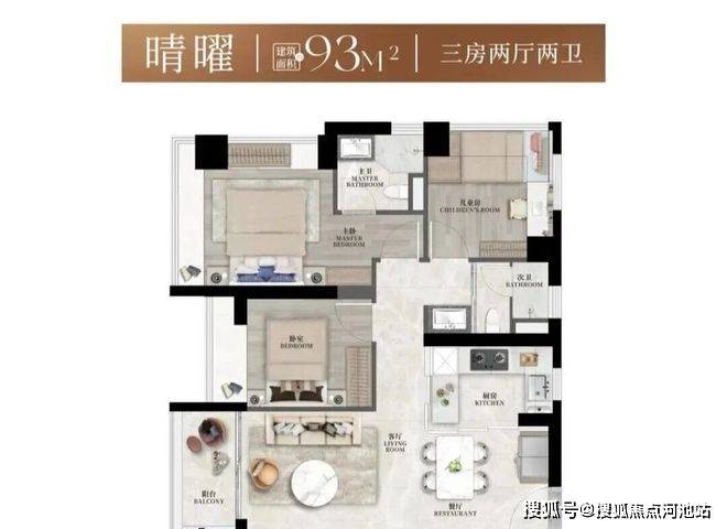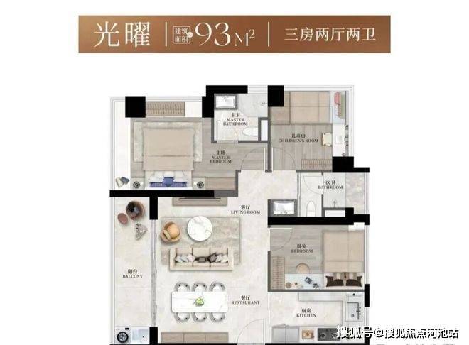 建面约93㎡3房2卫,设计了两种户型,在三房的功能尺度下实现大平层般的豪宅享受。