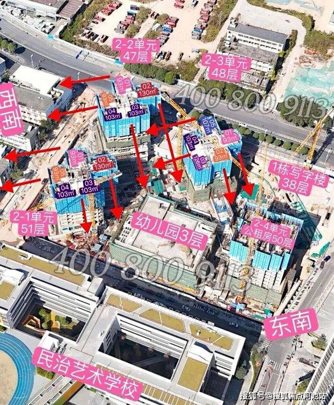 ▲金地启曜航拍户型朝向示意图