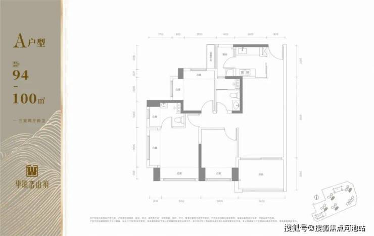 【建筑面积94-100㎡3房2卫】
