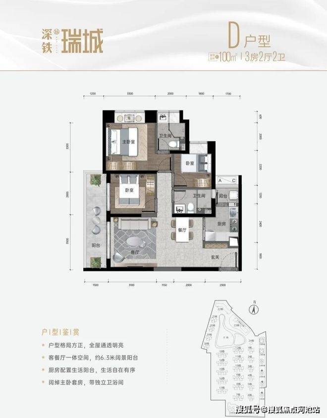 D户型 建面约100㎡舒居大三房