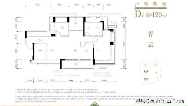 120㎡的4房2厅2卫,设计的是横厅南北通透格局,进门赠送约4.6㎡的入户玄关(不计算在户型图内),客餐厅6.35米开间,LDKB一体化设计,分别做到了主卧22.5㎡/次卧11.56m²/次卧9.52㎡/次卧8.25㎡(包含墙体飘窗),主卧带设备平台,客厅连接次卧出6.25米长大阳台,L型厨房,得房率约79.2%(不含赠送),阳台主朝东南向。套内面积94.63m²+赠送面积31.04m²=实用面积125.67m²,加上赠送后得房率约105.13%。