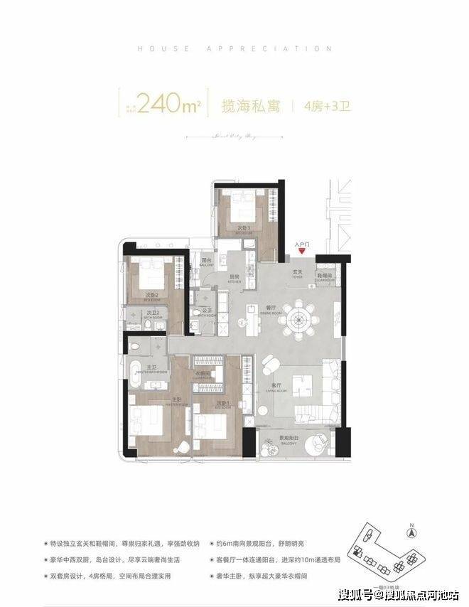 建面约260㎡揽海官邸 4房+3卫(T11-03低区)