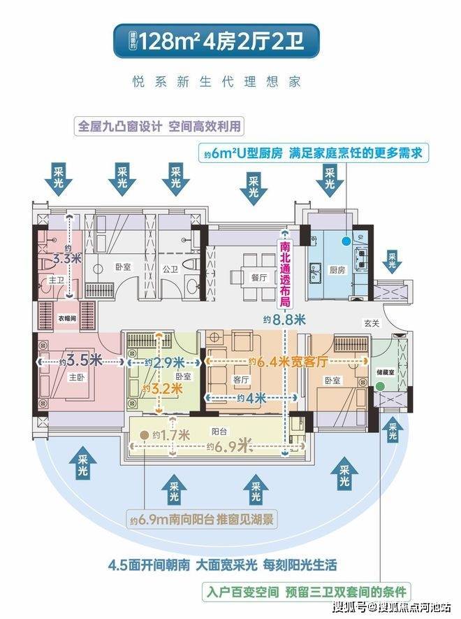住宅户型:建面约84-128㎡三至四房,住宅使用率约78%(未包含不计容的飘窗、一半阳台)