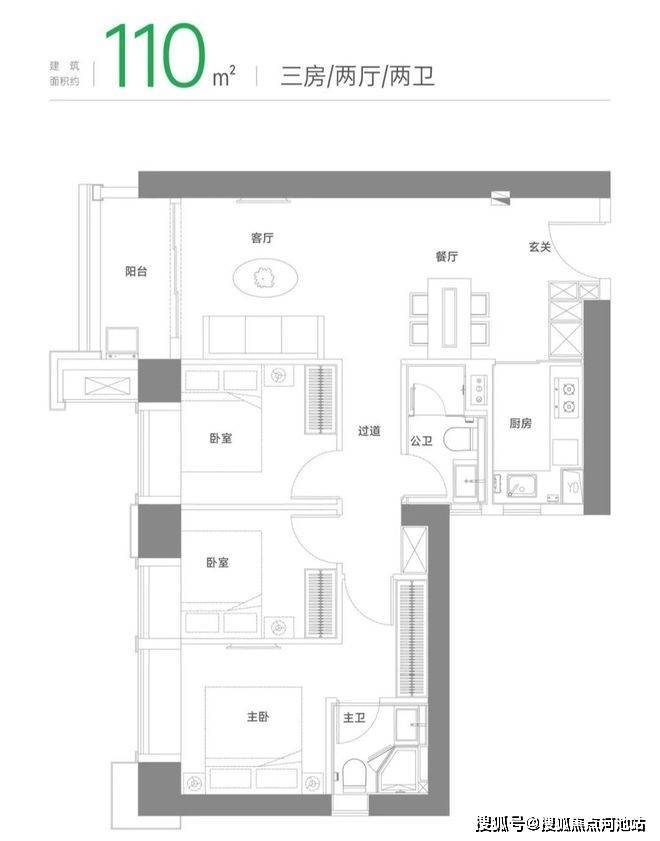 建面约110m²三房两厅两卫