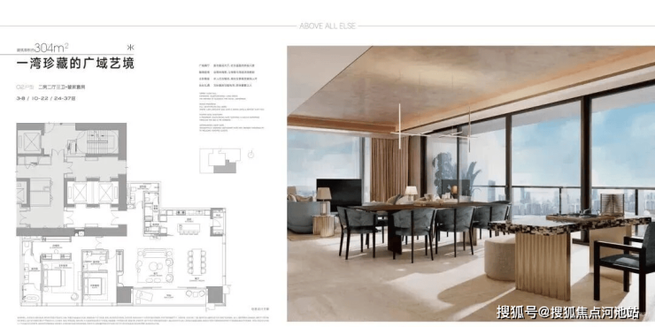 产品设计上,据了解,多为面积约300-1000㎡的宽境大平层产品,首批推出T3栋约123户,低区约304-327-402㎡,高区约400-570-1000㎡,层高约3.6-4.5米,均通燃气且配备超大阳台,部分户型采用 270° 环幕视野设计。