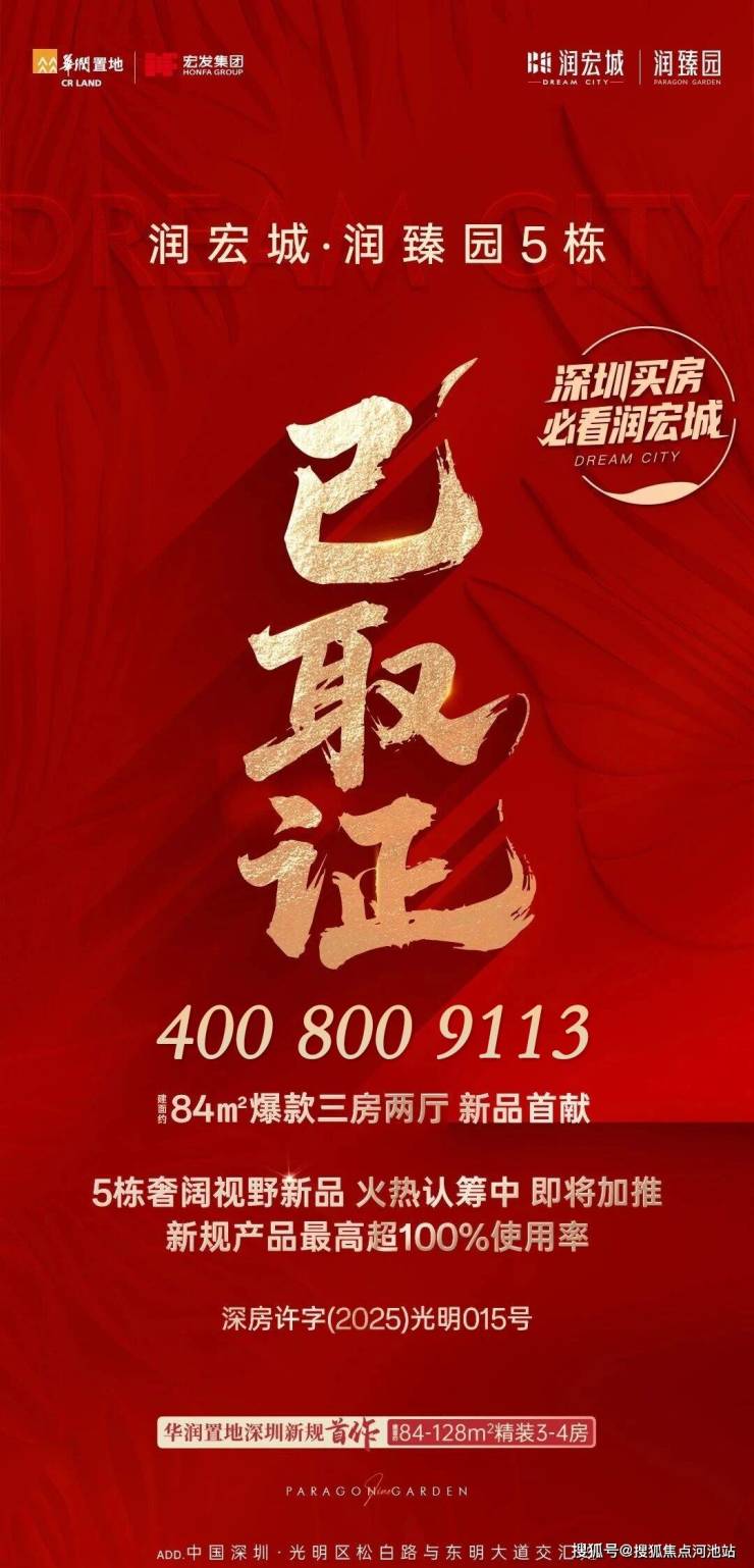 最新消息:深圳光明·塘尾【润宏城·润臻园】最新加推5栋已经取证,本次加推共286套,备案均价3.86万/㎡,备案总价274-583万!本次户型面积84-90㎡三房两卫,111-127㎡四房两卫!已经正式开售!