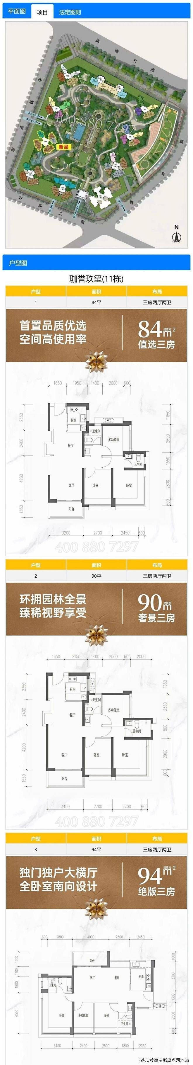 94㎡三房二厅两卫,总价473-488万,单价约5.01-5.17万/㎡
