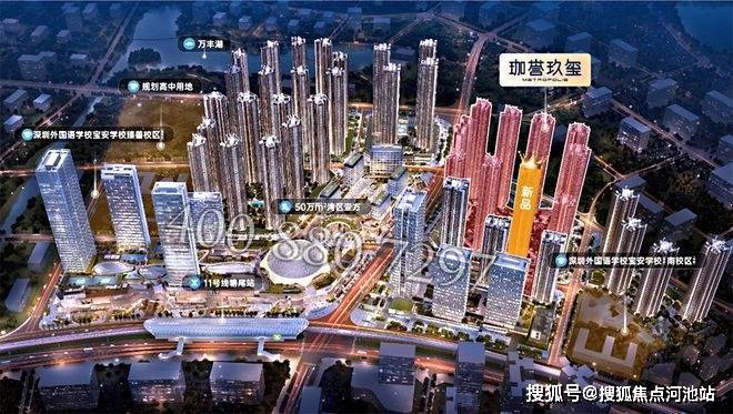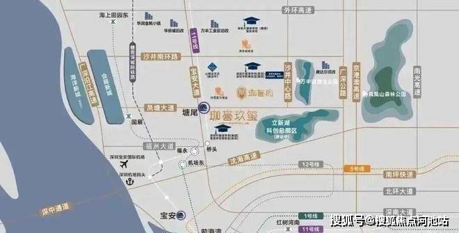 珈誉府项目位于深圳宝安沙井新桥,项目本身是一个大型综合体,自身配套丰富,自带50万㎡大型商业;地铁11号线塘尾站挨着项目,深圳外国语宝安学校在项目南北两侧,且靠近万丰湖、立新湖,有生态资源。