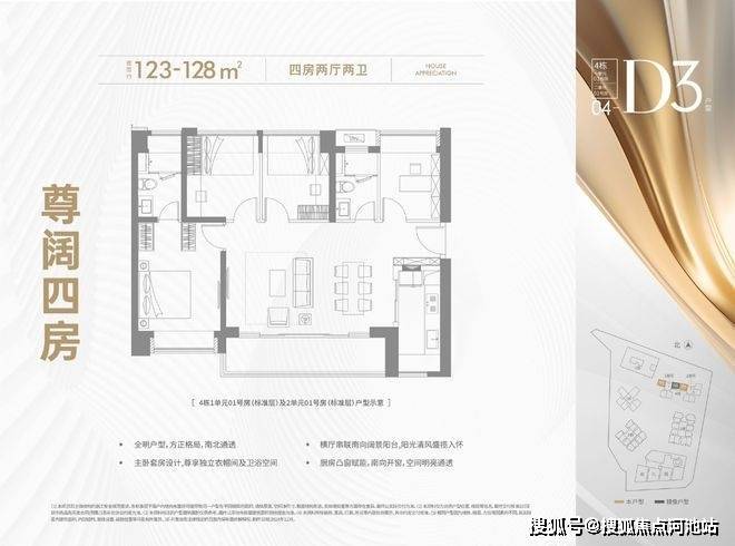 123-128㎡(四房两卫)轻奢阔绰户型,尊享高阶生活品质!