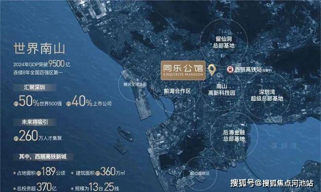 看下图,同乐公馆东面是南山科技园,西面是前海,南面是后海、深圳湾,北面是西丽留仙洞。