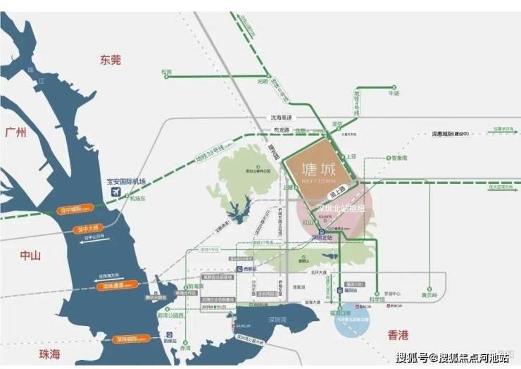 项目还依托深圳北站与宝安国际机场,实现深港、深广半小时生活圈,共融大湾区1小时生活圈。