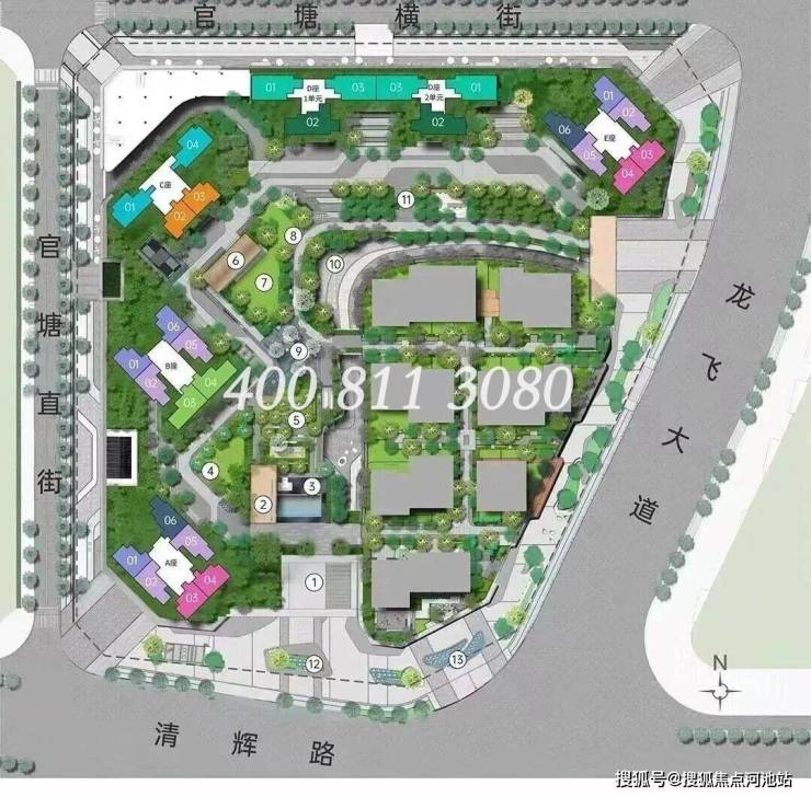 【梯户比】1栋A/B/E座3梯6户,1栋C座2梯4户,1栋D座2梯3户