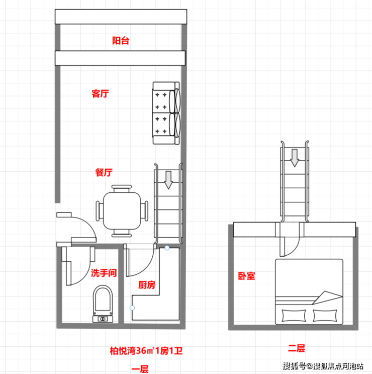 恒裕柏悦湾公寓36㎡1房2庁1卫一层4户