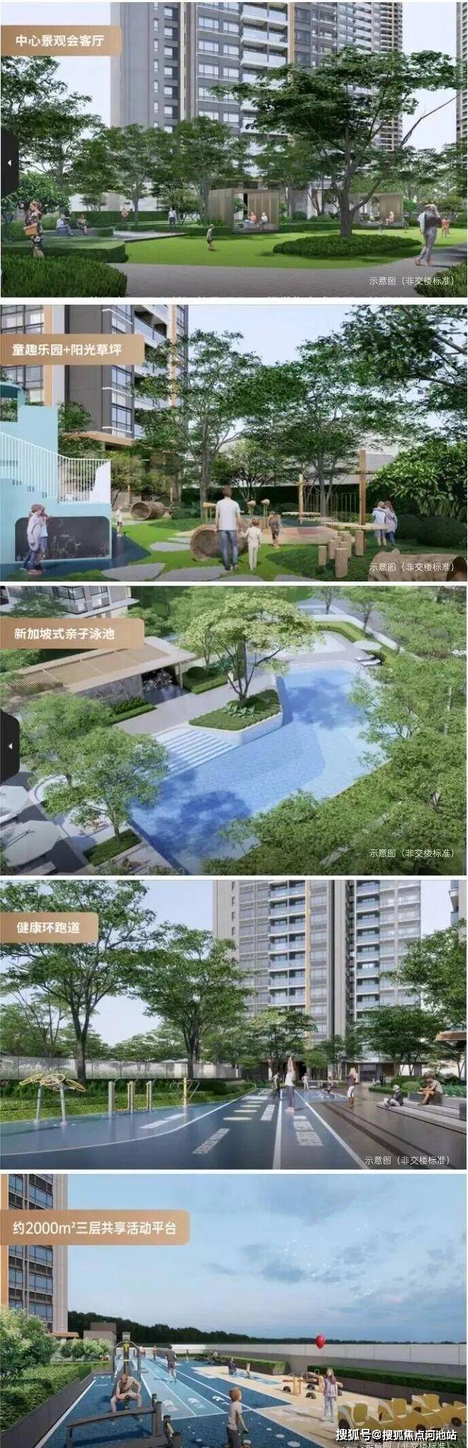 约4.2万㎡都市全龄乐活园林,涵盖童趣乐园、屋顶活动平台、亲子泳池、环氧跑道等功能区,构建全龄社交生活主场。