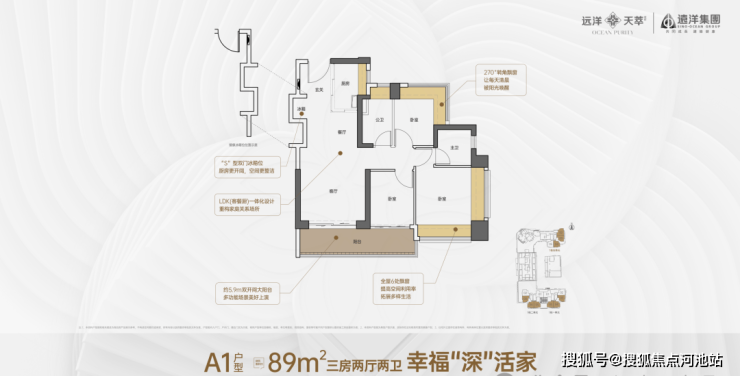 89㎡的3房2厅2卫,折后总价363-450万/套,单价4.3-5万/㎡。