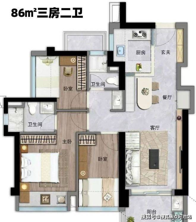 约86㎡3房2厅3卫