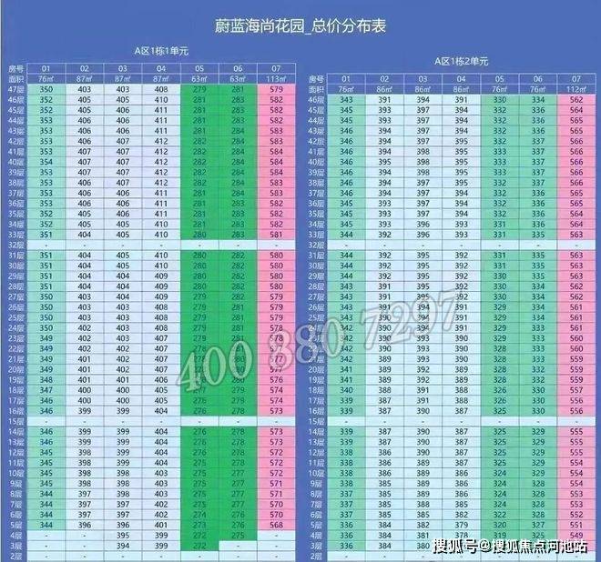 A区共2栋楼,1栋1单元47F、1栋2单元46F,约595套住宅;
