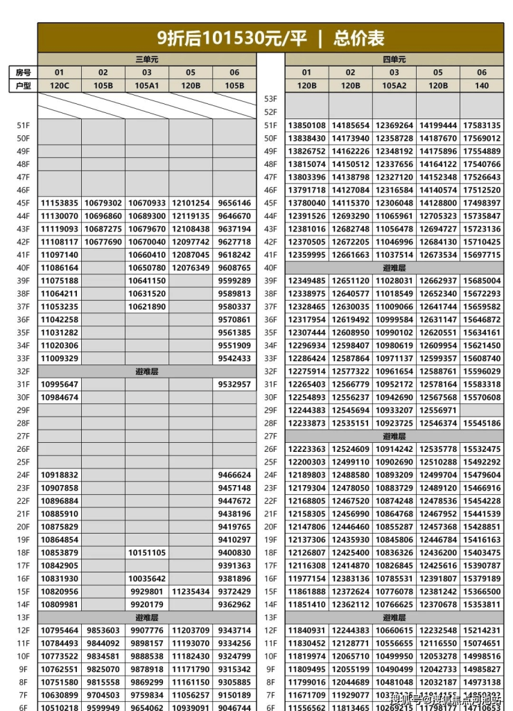 120㎡:8.52-12.11万/㎡,总价1039-1420万(性价比最高)