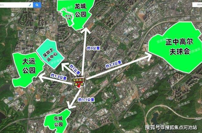 文娱公园配套:在深铁阅云境广场距离1公里处有深圳大运中心,内设有体育馆,体育场,游泳馆,足球场,400米环形跑道,每年有多场明星演唱会就是在大运体育馆举行;在周边1.3公里范围内有大运公园,乐城公园等,约3公里范围有龙城活力谷公园,龙城公园等大型公园配套,非常适合闲时散步爬山,亲子时光,在约3.3公里处还有正中高尔夫球会,拥有36洞锦标赛级球场,不定期举行多项赛事活动。