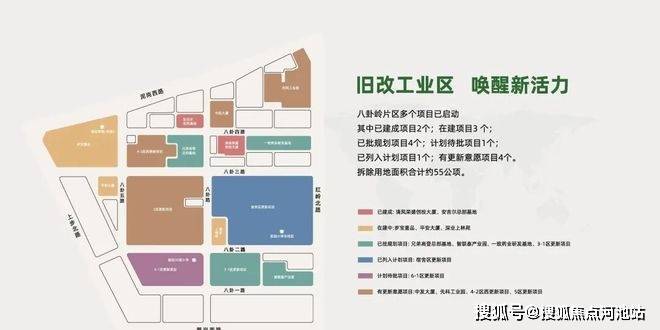 (项目区位图)旧改工业区 唤醒新活力八卦岭片区多个项目已启动,其中已建成项目2个,在建项目3个,已批规划项目4个,列入计划项目1个,计划待批项目1个,有更新意愿项目4个。拆除用地面积合计约55公顷。