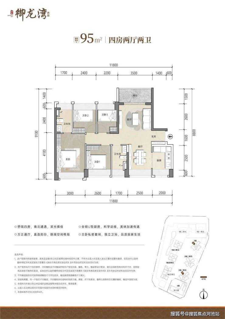 【建筑面积95㎡4房2卫】