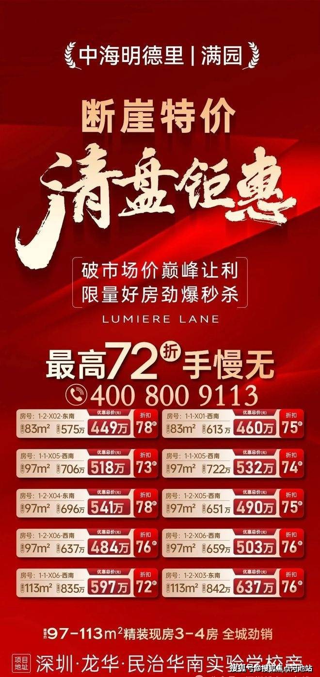 最新消息:深圳市龙华区梅林关【中海明德里】楼盘这几天推出几套内部特惠单位,原备案价650万的三房两卫,直接打到475万一口价,目前还有几套单位可以选择!加上额外媒体优惠返利,可以达到约465万左右,还有少量现楼在售,目前清盘甩卖中,精装现楼买了即可办证拎包入住!