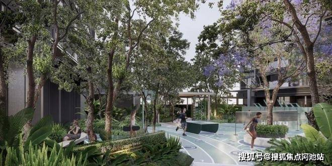 小区设置了非常丰富的林荫休憩空间,围绕“森境园林”搭建出众多场景,在园区里种植了多达65种植物,针对空气适宜性改善、生物多样性提升功能分类,构建九处有温度的艺术森林。