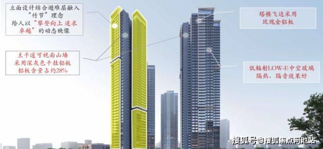 奕式的外立面对标的是写字楼和深圳15万+豪宅,采用的是铝板幕墙+LOW-E玻璃,建筑风格是极简风,干净平整,很有质感。