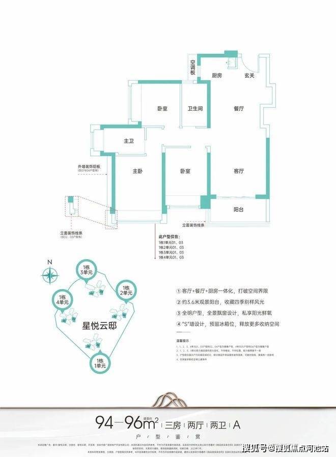 星河星悦云邸项目建设用地面积约2万㎡,总建面151559.61㎡,计容建面33400㎡,其中住宅建面29050㎡,商业建面1500㎡,幼儿园建面2400㎡,容积率5.36,机动车位1000个。项目由1栋、2栋AB座、3栋幼儿园组成,1栋、2栋楼层层数均为48层,总房源879户,其中户型套内建面<90㎡有884户,占比89.16%。