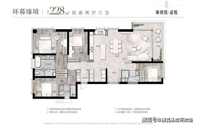 位于前海妈湾的万科瑧湾悦推出大平层公寓产品「嘉悦」,仅130席,户型为约160㎡3房和约228㎡4房,主朝向西南向看公园,高区可眺望整个前海天际线和海湾景观。为精装现房,酒店式入户大堂设计,两梯两户独立电梯厅,约3.5m层高,70年产权(民水民电通燃气)。