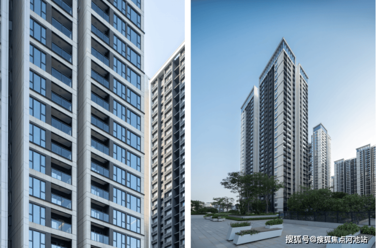 深圳会展湾·东城,典造地下车库、首层架空平台和二层架空庭院三重入户大堂,为城市人物渲染出入归家应有的仪式感。