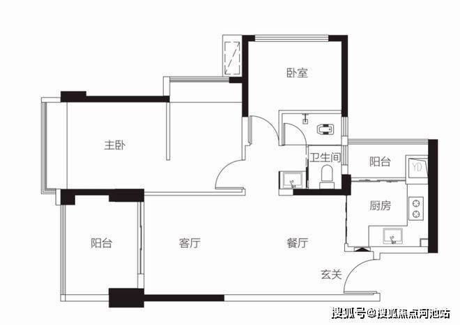 【1栋2栋01户型94㎡3房2卫】客厅朝东带阳台,主卧朝东,2房朝北