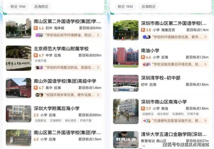 项目周边有北师大附小,南山外国语学府学校,南二外学府中心南油小学,深圳大学附属后海学校,北师范大学附中,深圳湾学校等