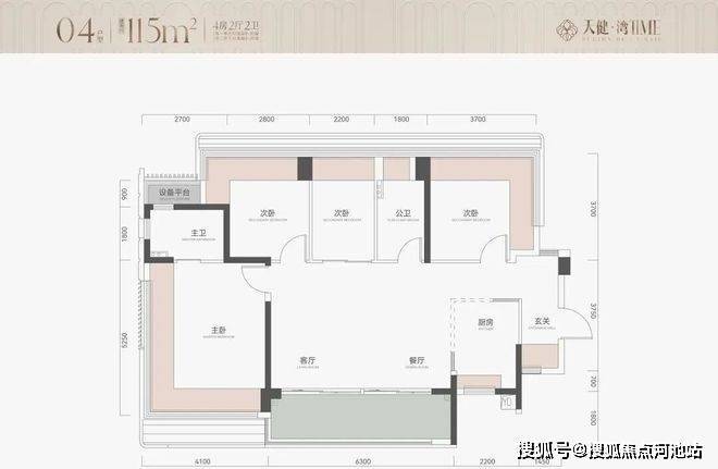 115㎡4房2卫,横厅户型,朝南看海,入户独立玄关,但三个次卧朝北;