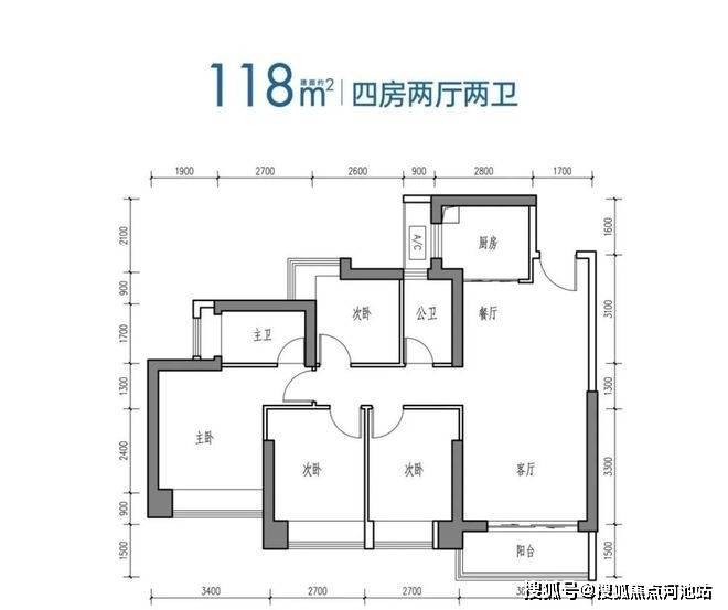 114-117㎡的4房2厅2卫,设计的是横厅南北通透格局,进门入户玄关,客餐厅6.3米开间,LDKB一体化设计,全屋8个飘窗面,4个卧室分别做到了主卧15.35㎡/次卧9.86㎡/次卧9.4㎡/次卧8.16㎡(包含墙体飘窗),U型厨房,卫生间干湿分离,得房率约84.87-87.1%(包含赠送),阳台主朝西南或东南向。
