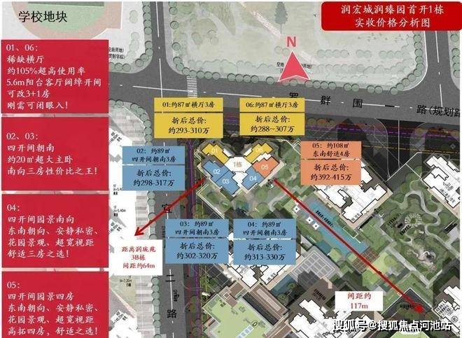 润臻园(2-12地块)位于东明大道和松白路西北侧,规划建筑面积约29万㎡,由7栋高层住宅围合组成,润臻园相比一期润宏城小区更大一些,户型也是做的更好,上个月首推的是1号楼总层高仅26层,,建面约89-108㎡,使用率最高超100%,首推就去化了80%!