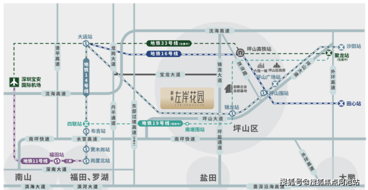 地铁19号线(规划中):坪山首条区内地铁线,项目临近14/19号线换乘站锦龙站,南塘围站。
