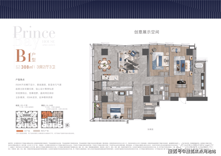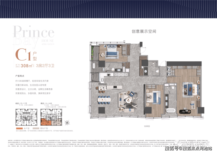 大平面大尺度定位,全户型纵享环幕视野。项目打造主力建面约308-415㎡纯粹品质公寓共191席,顶层为建面约1280㎡公寓产品。