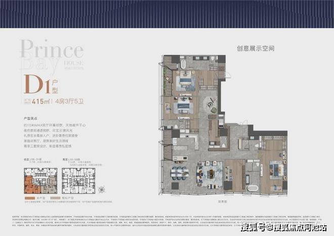 - 4房3厅5卫:415平方米