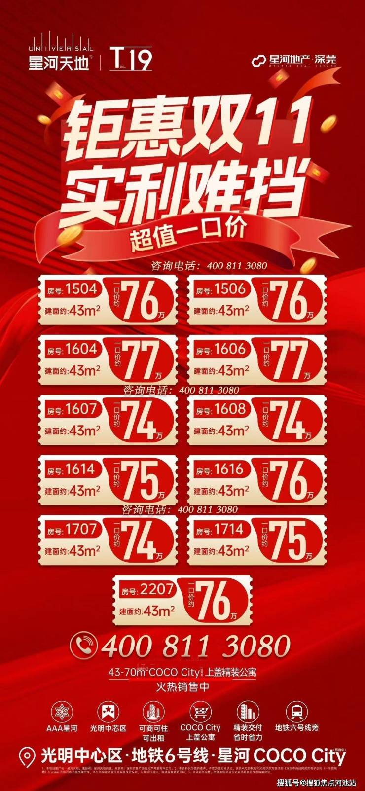 光明红本公寓【星河天地·T19寓】总价72万起,下楼即地铁6号线光明大街站