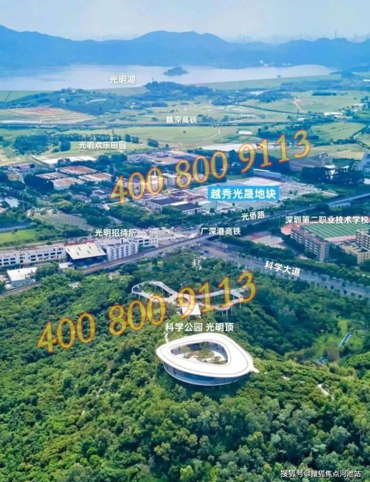项目位于光明区新湖街道光侨路与科学大道交汇处东南侧,地处光明中心区板块,西北侧与科学公园北翼相邻,东南侧则是充满欢乐的光明欢乐田园,北侧靠近中山大学深圳校区及其附属第七医院,南面距离光明高铁站仅4.8公里。
