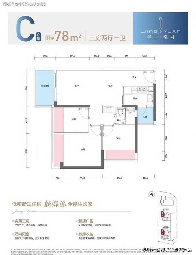 78㎡3房2厅1卫:折后总价165-180万,单价2.11-2.3万/㎡,最低首付可灵活操作,完美适配年轻刚需;